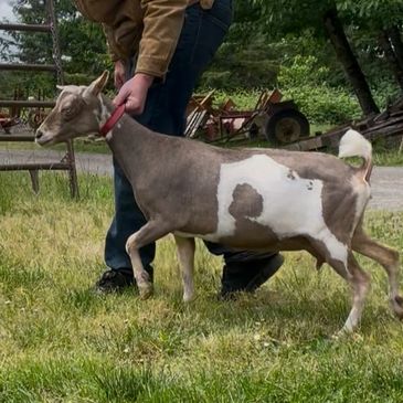 Loki is a 3 year old chocolate buckskin buck. His pedigree is made up of castle rock and proctor hill genetics, with heavy focus on capacity and teat size.
